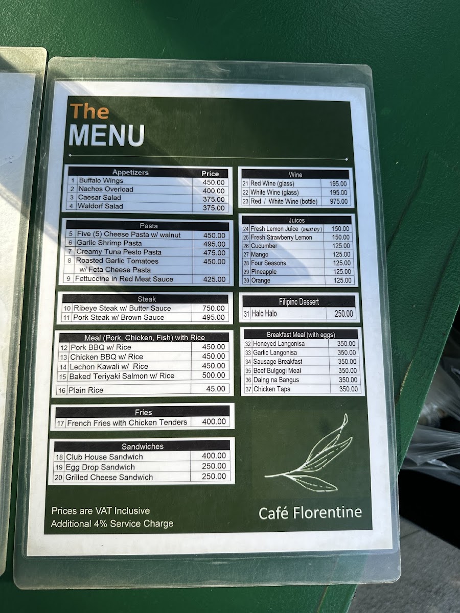 Cafe Florentine Menu
